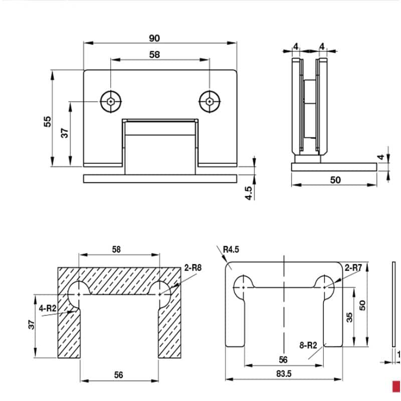 - Trọn bộ gồm: Bản lề kính kèm vít lục giác