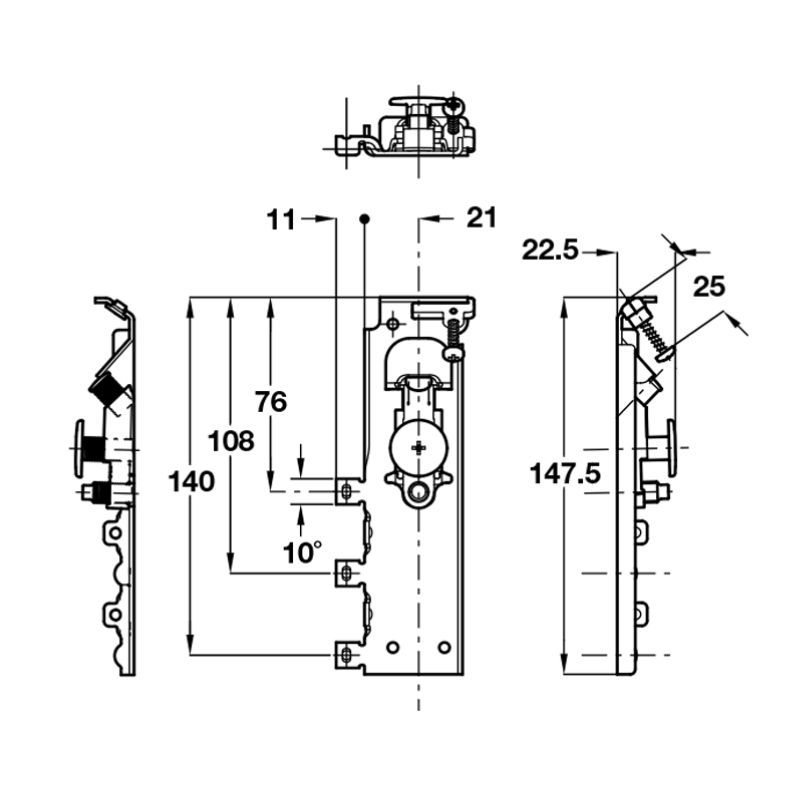 - Gắn vào các mặt bên tủ bằng cách tạo lỗ khoan 4 mặt và cố định bằng cách xoay chốt khóa có đường vân 180°