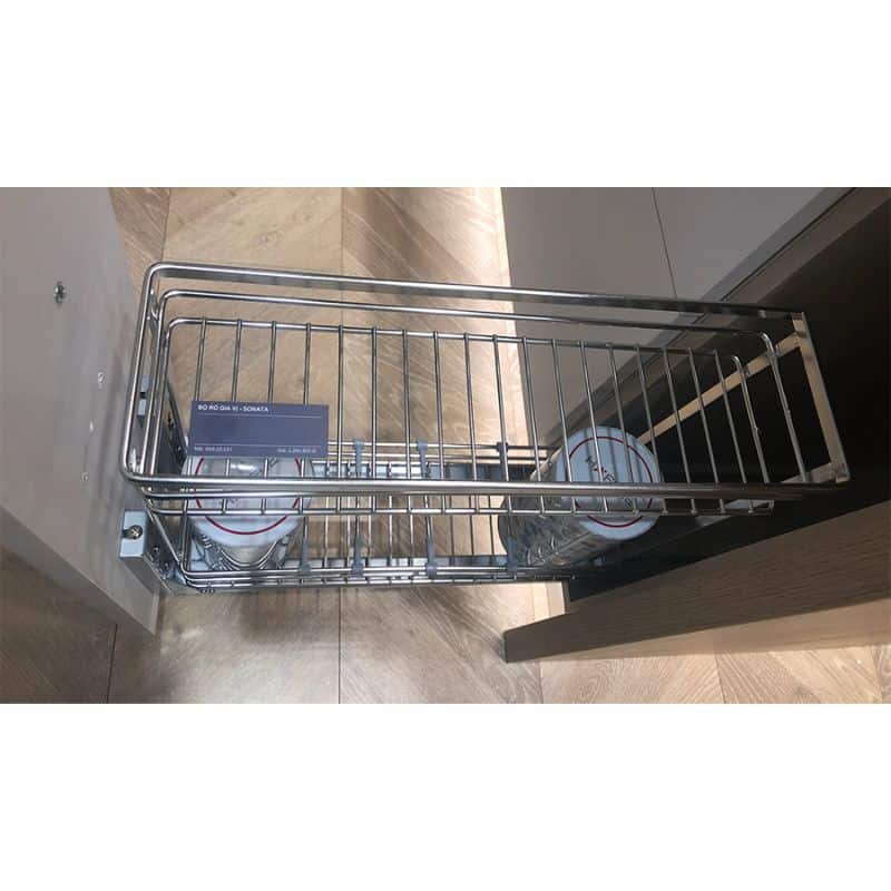 - Trọn bộ gồm: Bộ ray giảm chấn lắp đáy, 2 bas mặt trước, 2 bas giữ ray, khung rổ, 2 bas nhựa kết nối khung và rổ, 18 ốc lắp đặt.