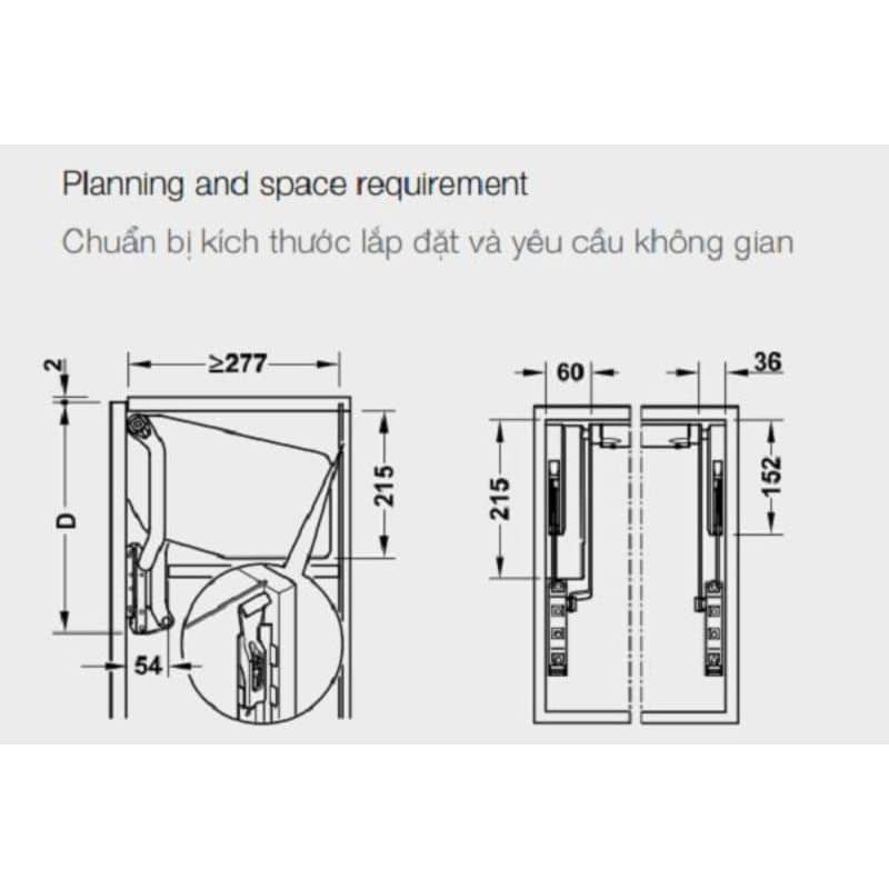 Bộ tay nâng FREE UP E Hafele 372.29.711 nắp xám