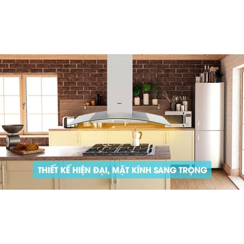 - Dạng hút mùi gắn tường kính cong