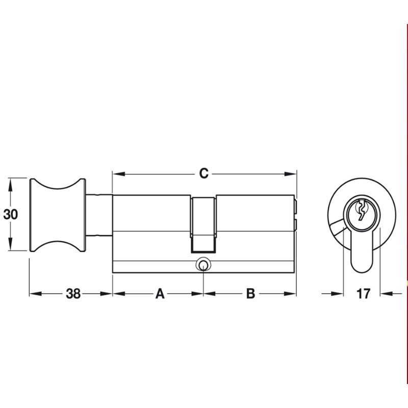 Ruột khóa 1 đầu chìa, 1 đầu vặn Hafele 916.96.305, 60mm Đồng thau