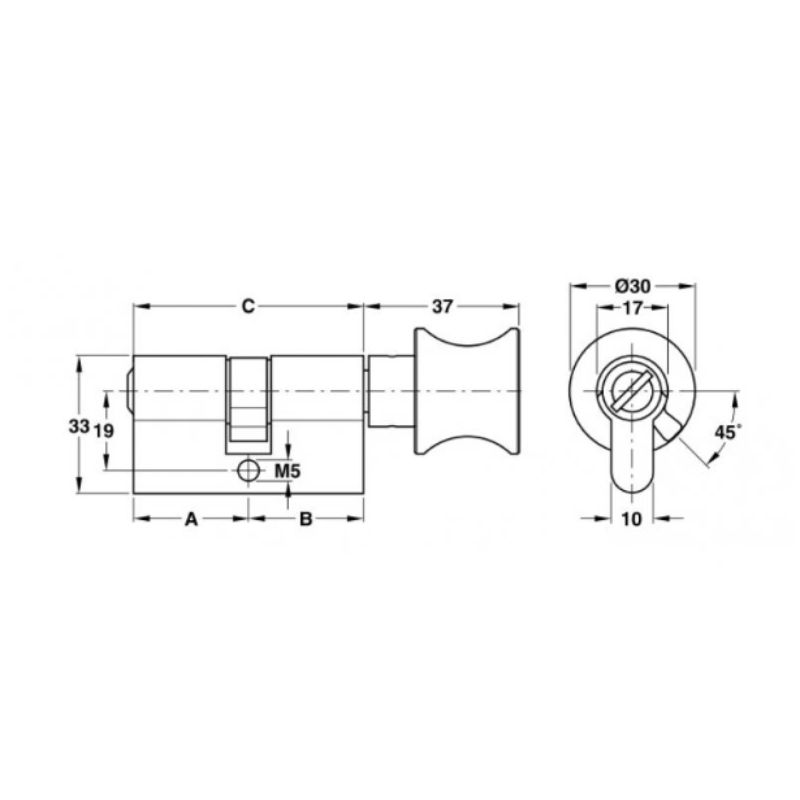 Ruột khóa cho cửa phòng vệ sinh Hafele 916.08.465, 71mm Đồng thau