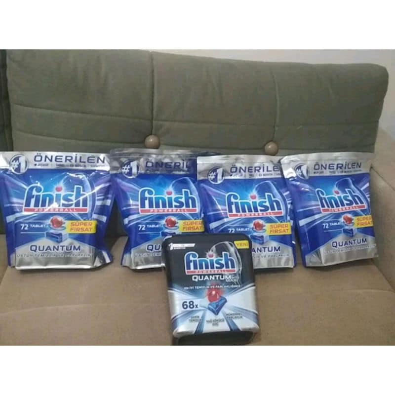 - Khác với viên rửa chén thông thường khi sử dụng bạn phải xé bỏ lớp túi bảo vệ viên rửa, Viên rửa chén Finish Quantum Max là dòng sản phẩm cao cấp bạn không phải xé bỏ lớp bóng vì nó có lớp màng tự tan, chỉ cần lấy ra một viên rồi đặt vào khay chứa của máy sau đó bắt đầu chương trình rửa bình thường.