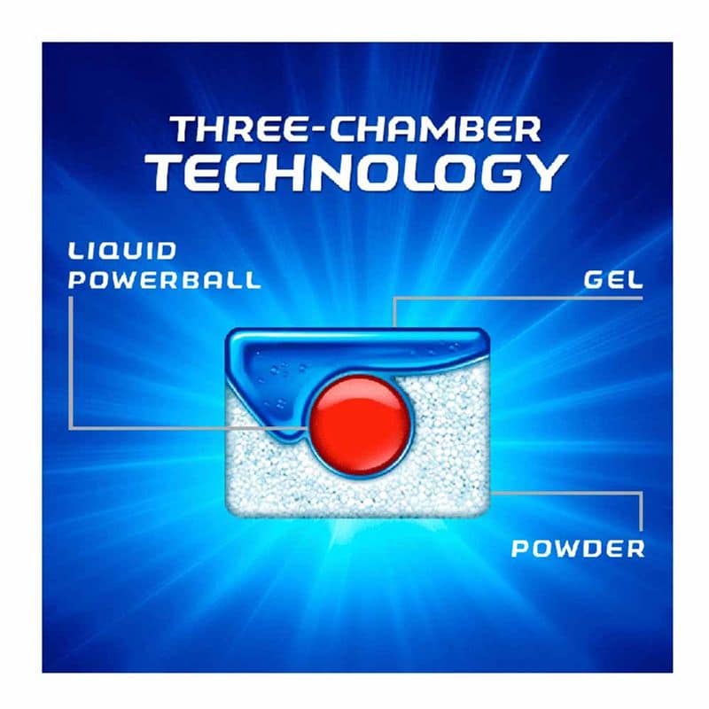 - Công thức 2 lớp xử lý dầu mỡ, loại bỏ các vết bẩn cứng đầu và powerball mang lại cho chén, đĩa sáng bóng không còn vệt nước