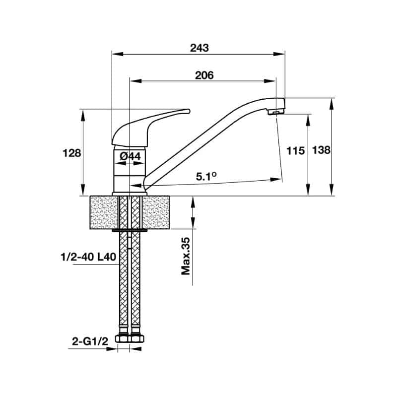 Thông số kĩ thuật của vòi rửa chén Hafele Cromus 570.50.270